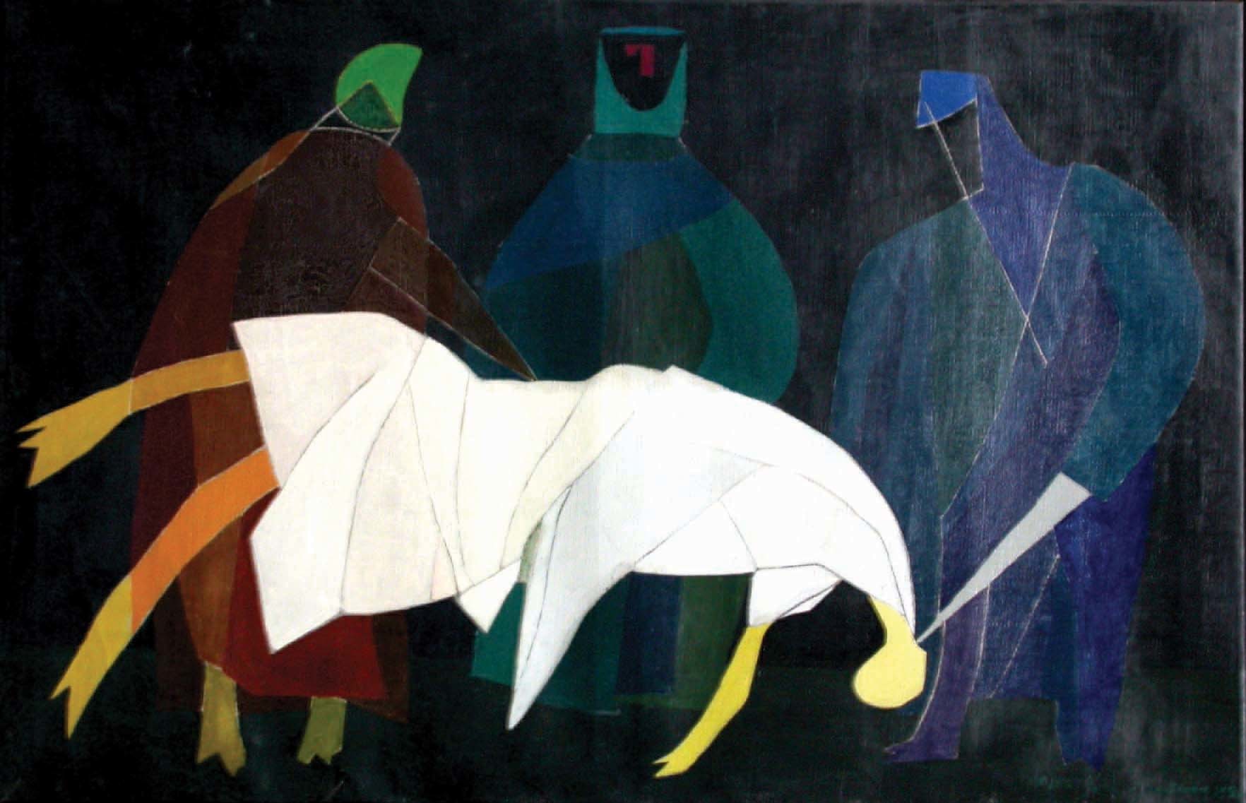 Megmutatjuk az Ubul című festményt is, ahol Kállai mögött, a háttérben Vajda ikonos művei láthatók. Ők voltak a tekintélyek: Kállai a teoretikus tekintély, és mindenek mögött az igazi eszme, a művészi nagyság, Vajda.